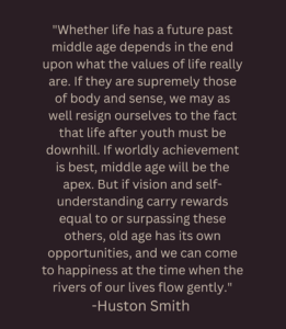 - Some cultures see life after middle age as a time for personal reflection and spiritual exploration. What do you think the purpose and opportunities of the final stage of life are?