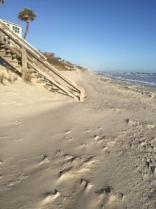 “When I was walking by, I noticed that at high tide the ocean was up close to your concrete retaining wall and the stairway down to the beach looks like it’s disappearing into the sand,” I said. “Has it been like that ever since you’ve owned the home?”