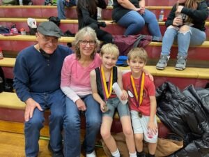 This has been a potential post simmering inside this bald knot ever since I attended our grandsons’ wrestling tournament a few weeks ago. At ages nine and eleven, Theo and Walter are heavily invested in the sport. Consequently, you can accurately predict where Popo and Oma are most weekends!